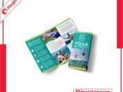 Kích thước brochure yoga gấp đôi: 20 cm x 20 cmx gấp lại thành 10 cm x 20 cm