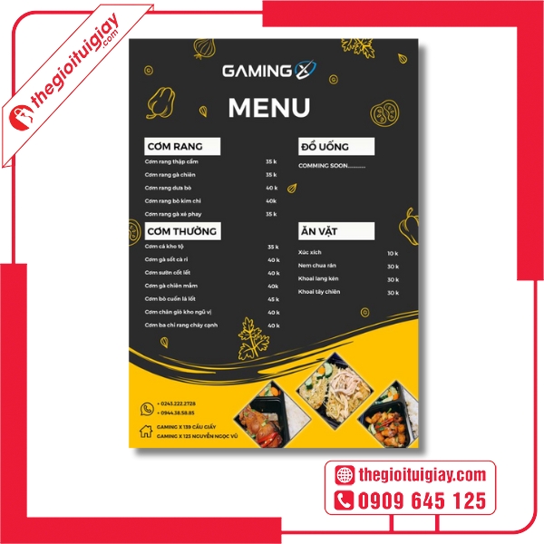 Với kinh nghiệm nhiều năm trong lĩnh vực in ấn, Thế Giới Túi Giấy tự hào mang đến dịch vụ thiết kế – in menu quán net giá rẻ, chất lượng cao, đáp ứng mọi yêu cầu từ thiết kế sáng tạo đến in ấn bền đẹp. Nếu bạn đang tìm kiếm xưởng in menu quán net uy tín, hãy liên hệ ngay Thế Giới Túi Giấy qua hotline 0909.645.125 để được tư vấn miễn phí, nhận mẫu thử và báo giá nhanh nhất.