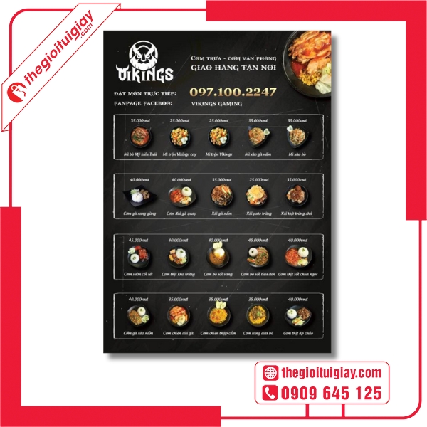 Mẫu menu cơm và mỳ cho quán game Vikings Gaming