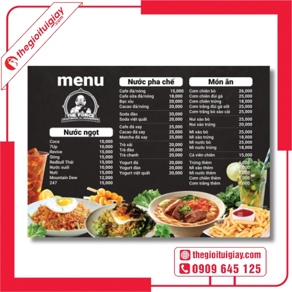 Mẫu menu đồ ăn thức uống tại quán net The Force