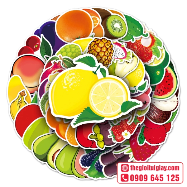 Sticker hoa quả là dạng nhãn dán sử dụng hình ảnh các loại trái cây như cam, táo, dâu, chuối, nho… được thiết kế theo nhiều phong cách khác nhau. Tùy nhu cầu, sticker có thể ở dạng sticker hoa quả hoạt hình, phong cách tối giản hoặc sticker hoa quả dễ thương, phục vụ mục đích trang trí, nhận diện thương hiệu hay làm quà tặng nhỏ xinh.