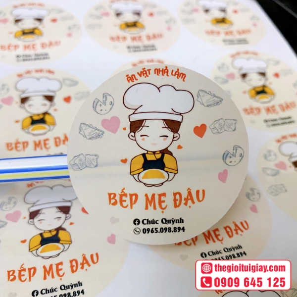 Độ dày tiêu chuẩn của tem ăn vặt thường dao động từ 115gsm đến 150gsm, vừa đủ độ bền và khả năng bám dính. Điểm cộng lớn là số lượng in không bị giới hạn, dù bạn cần vài trăm tem cho cửa hàng nhỏ hay vài chục nghìn tem cho xưởng lớn, đều có thể đáp ứng linh hoạt.
