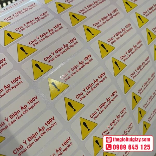 Khi in tem cảnh báo điện giật, việc lựa chọn đúng quy cách đóng vai trò quan trọng trong việc đảm bảo độ bền, khả năng hiển thị và sự an toàn cho người sử dụng. Những yếu tố dưới đây là điểm cần cân nhắc: