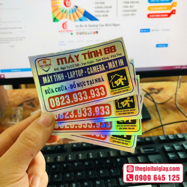 Tem dán máy tính không chỉ giúp bảo vệ thiết bị mà còn nâng cao tính thẩm mỹ, tạo dấu ấn thương hiệu chuyên nghiệp. Để sở hữu những mẫu tem đẹp, bền và đúng nhu cầu, Thế Giới Túi Giấy là địa chỉ uy tín mà bạn có thể tin tưởng. Với công nghệ in hiện đại và dịch vụ tận tâm, chúng tôi cam kết mang đến sản phẩm chất lượng cao với giá hợp lý. Liên hệ ngay hotline: 0909.645.125 để được tư vấn và báo giá nhanh chóng.
