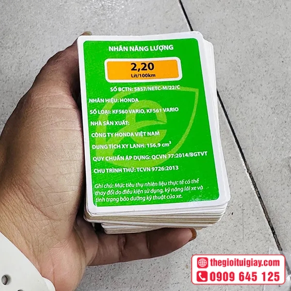 Nếu bạn đang tìm kiếm giải pháp in tem năng lượng chất lượng cao, hãy để Thế Giới Túi Giấy đồng hành cùng bạn trong việc xây dựng hình ảnh thương hiệu chuyên nghiệp. Liên hệ ngay hotline 0909.645.125 để được tư vấn và báo giá nhanh chóng. Với kinh nghiệm nhiều năm trong lĩnh vực in ấn, chúng tôi cam kết mang đến những mẫu tem đẹp, bền và chuẩn thương hiệu cho bạn.