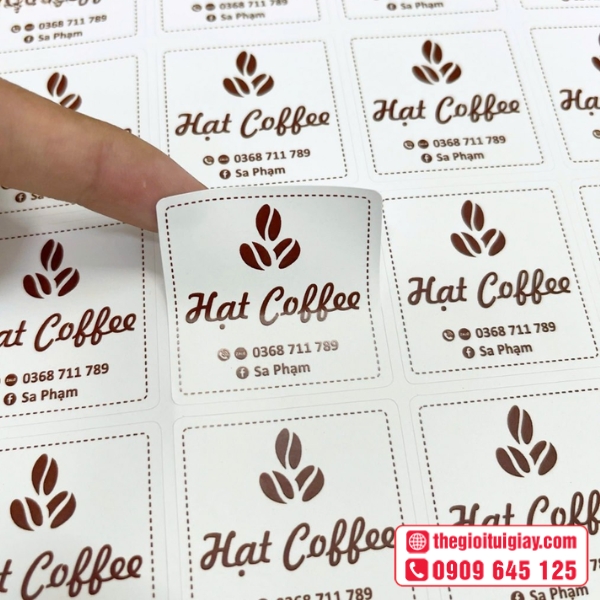 Mẫu tem nhãn hình vuông giá rẻ, chất lượng cao - Hạt Coffee