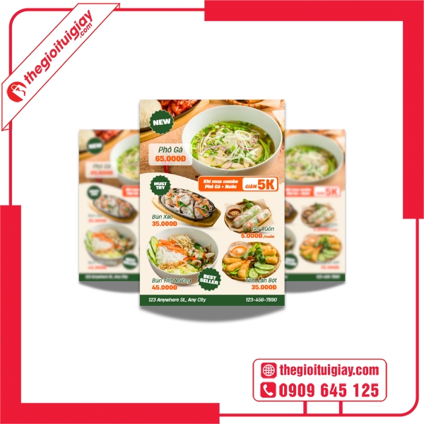 Trong ngành dịch vụ ăn uống, việc có một chiếc tờ rơi menu đẹp mắt và chuyên nghiệp là yếu tố quan trọng giúp thu hút khách hàng và tạo dựng ấn tượng đầu tiên. Dịch vụ in tờ rơi menu chuyên nghiệp tại Thế Giới Túi Giấy cam kết mang đến cho bạn những sản phẩm menu ấn tượng, giúp nâng cao hình ảnh thương hiệu và gia tăng doanh thu cho nhà hàng, quán cà phê hay các cơ sở dịch vụ ăn uống của bạn.