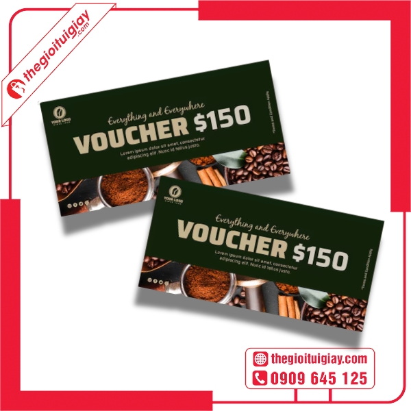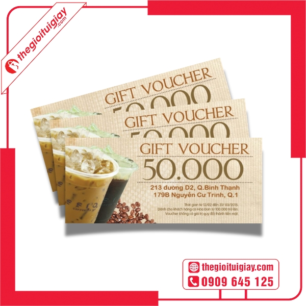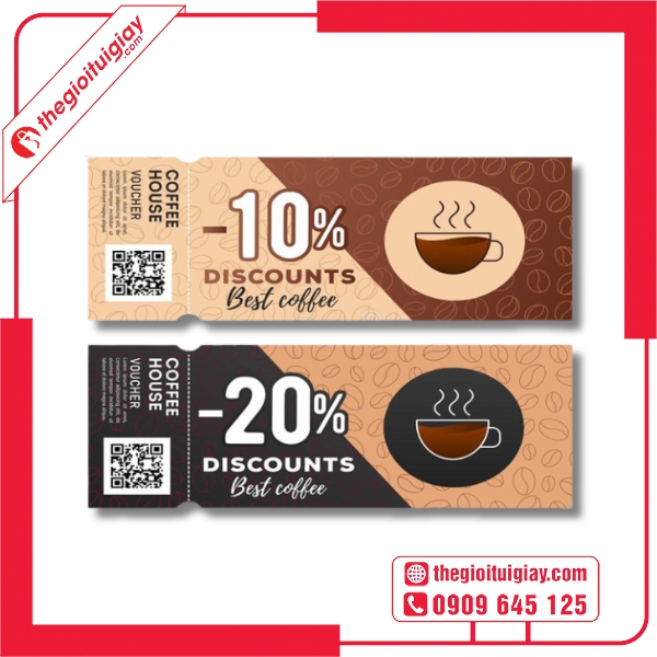 Một chiếc voucher cà phê đẹp và thiết kế chuẩn là “chìa khóa” giúp quán tăng doanh số và tạo dựng uy tín lâu dài. Với dịch vụ thiết kế và in voucher chuyên nghiệp, tận tâm, Thế Giới Túi Giấy cam kết mang đến cho bạn sản phẩm chất lượng cùng trải nghiệm tốt nhất. Liên hệ ngay hotline 0909.645.125 để được tư vấn miễn phí và nhận báo giá nhanh chóng.