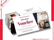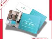 5. Chất liệu và kỹ thuật in góp phần tôn lên đẳng cấp: Ngoài phần thiết kế, chất liệu giấy và công nghệ in cũng là yếu tố quyết định giá trị cảm nhận. Một voucher in trên giấy mỹ thuật, cán mờ hoặc ép kim logo sẽ mang lại hiệu ứng sang trọng, chuyên nghiệp và cao cấp – phù hợp cho các thương hiệu khách sạn lớn.