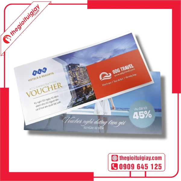 Một voucher khách sạn được thiết kế đẹp, in ấn sắc nét không chỉ mang lại giá trị sử dụng mà còn góp phần quảng bá hình ảnh thương hiệu đẳng cấp trong lòng du khách. Nếu bạn đang tìm kiếm đơn vị thiết kế và in voucher khách sạn chuyên nghiệp, hãy liên hệ ngay Thế Giới Túi Giấy qua hotline: 0909.645.125 để được tư vấn và nhận báo giá tốt nhất
