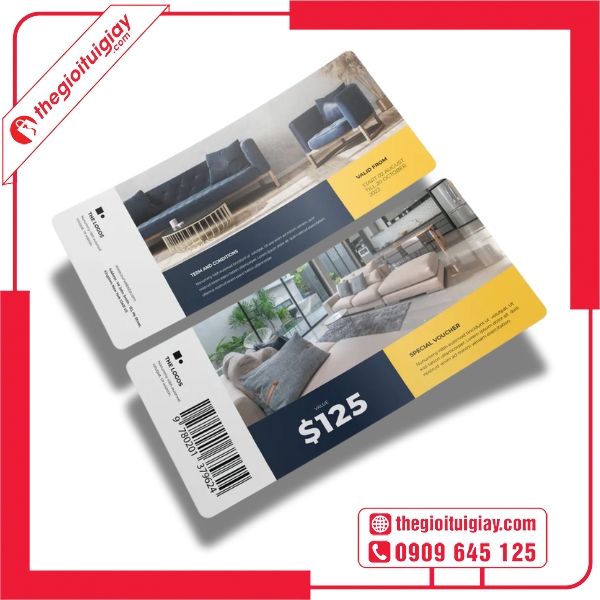 Voucher khách sạn đang trở thành công cụ quan trọng giúp các doanh nghiệp trong ngành du lịch – lưu trú thu hút khách hàng và tăng doanh số hiệu quả. Việc sở hữu những mẫu voucher khách sạn đẹp, sang trọng không chỉ nâng tầm thương hiệu mà còn tạo ấn tượng sâu sắc với khách hàng. Tại Thế Giới Túi Giấy, chúng tôi cung cấp dịch vụ thiết kế và in voucher khách sạn chuyên nghiệp, đáp ứng mọi yêu cầu về chất lượng và thẩm mỹ của doanh nghiệp bạn.